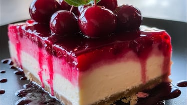 Write a short text about your Prepare to delight your taste buds with this stunning Layered Cherry Cheesecake Dessert. The rich, smooth cheesecake base pairs perfectly with a bright and tangy cherry compote, creating a harmonious flavor experience that will impress at any occasion—whether a special dinner party or a cozy night in.
